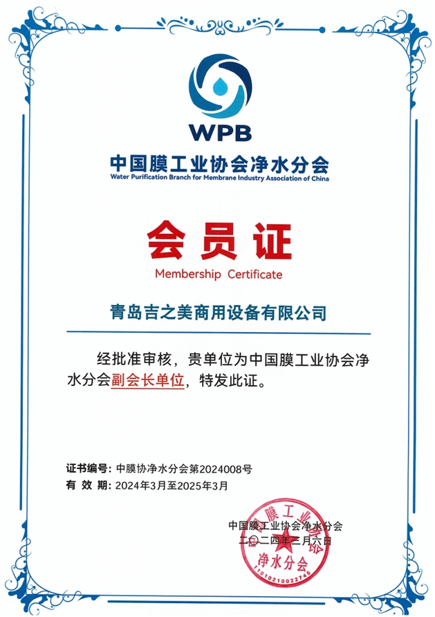 公司新闻 | 吉之美荣任中国膜工业协会净水分会副会长单位!